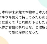 日本科学未来館で本物の日本刀をウキウキ気分で持ってみたらあまりに重くて「これ振り下ろしたら人体が容易に斬れるな」と理解して急に冷静になった