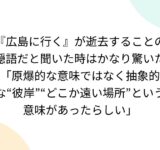 『広島に行く』が逝去することの隠語だと聞いた時はかなり驚いた「原爆的な意味ではなく抽象的な“彼岸”“どこか遠い場所”という意味があったらしい」