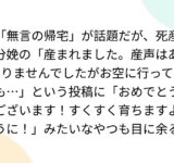 「無言の帰宅」が話題だが、死産分娩の「産まれました。産声はありませんでしたがお空に行っても…」という投稿に「おめでとうございます!すくすく育ちますように!」みたいなやつも目に余る