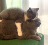【これがこうなったシリーズ】成長後も子猫気分で同じ姿勢をとる猫と「あっ…」ってなってる先輩猫