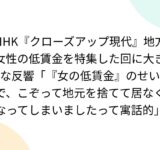 NHK『クローズアップ現代』地方女性の低賃金を特集した回に大きな反響「『女の低賃金』のせいで、こぞって地元を捨てて居なくなってしまいましたって寓話的」