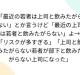 「最近の若者は上司と飲みたがらない」とか言うけど「最近の上司は若者と飲みたがらない」よ→「リスクが多すぎる」「上司と飲みたがらない若者が部下と飲みたがらない上司になった」