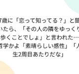 7歳に「恋って知ってる?」と聞いたら、「その人の隣をゆっくり歩くことでしょ」と言われた… 哲学かよ「素晴らしい感性」「人生2周目あたりだな」
