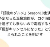 『孤独のグルメ』Season10出演予定だった温泉旅館が、ロケ時間を過ぎても来ないので電話すると「撮影キャンセルになった」と伝えられたことを明かす