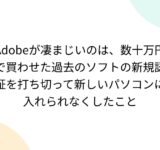 Adobeが凄まじいのは、数十万円で買わせた過去のソフトの新規認証を打ち切って新しいパソコンに入れられなくしたこと