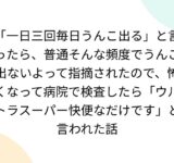 「一日三回毎日うんこ出る」と言ったら、普通そんな頻度でうんこ出ないよって指摘されたので、怖くなって病院で検査したら「ウルトラスーパー快便なだけです」と言われた話