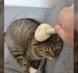 保護猫番組で人馴れしてない猫をブラシで撫でていた→猫用たわしを使ったら懐かない猫に絶大な効果を発揮した話「猫にモテたい(切実)」