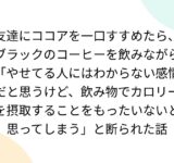 友達にココアを一口すすめたら、ブラックのコーヒーを飲みながら「やせてる人にはわからない感情だと思うけど、飲み物でカロリーを摂取することをもったいないと思ってしまう」と断られた話