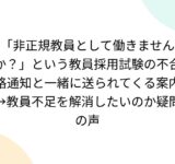 「非正規教員として働きませんか?」という教員採用試験の不合格通知と一緒に送られてくる案内→教員不足を解消したいのか疑問の声