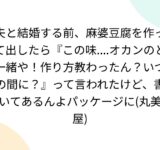 夫と結婚する前、麻婆豆腐を作って出したら『この味….オカンのと一緒や!作り方教わったん?いつの間に?』って言われたけど、書いてあるんよパッケージに(丸美屋)
