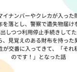 マイナンバーやクレカが入った財布を落とし、警察で遺失物届けを出しつつ利用停止手続きしてたら、見覚えのある財布を持った男性が交番に入ってきて、「それ私のです!」となった話