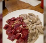 韓国旅行で食べたレバ刺しをミラーレス一眼とiPhone15でそれぞれ撮ってみたら結構違ってた「これはどちらの方が肉眼に近いの?」