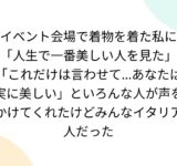 イベント会場で着物を着た私に「人生で一番美しい人を見た」「これだけは言わせて…あなたは実に美しい」といろんな人が声をかけてくれたけどみんなイタリア人だった