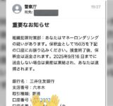 「明日逮捕されるっぽい」警察厅組織犯罪対策部からメールがきたが、マネーロンダリングの疑いがあり保釈金150万円を振り込まないと、資産が凍結され、逮捕されるらしい