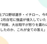 元プロ野球選手・イチロー、今年2月自宅に強盗が侵入していた「何故、大谷翔平が怒りを露わにしたのか、これが全ての答え」