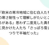 『欧米の寒冷地域に住む白人たちの寒さ耐性って理解しがたいところがある』思わず二度見した真冬に見かけた人たち「さっぽろ雪まつりで半袖だった」