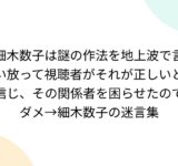細木数子は謎の作法を地上波で言い放って視聴者がそれが正しいと信じ、その関係者を困らせたのでダメ→細木数子の迷言集