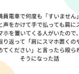 満員電車で何度も「すいません」と声をかけて手で払っても肩にスマホを置いてくる人がいたので、振り返って「肩にスマホ置くのやめてください」と言ったら殴られそうになった話