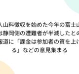 入山料徴収を始めた今年の富士山は静岡側の遭難者が半減したとの報道に「課金は参加者の質を上げる」などの意見集まる