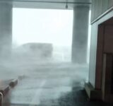 羽田空港の駐車場になだれ込む風と水 ホワイトアウトした外の様子に「台風?」の声、レーダーには大量の飛行機が