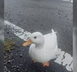 「家にアヒルが迷い込んだ上に、懐かれてしまった」迷子アヒルが毛なみもよくてかわいい、保険の勧誘かもしれない