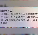 おばあちゃんからめちゃくちゃすぎるメッセージが届いた→「3本一気に抜くの結構だな…」「お大事にはこっちのセリフだ」