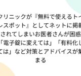 クリニックが『無料で使えるトイレスポット』としてネットに掲載されてしまいお医者さんが困惑「電子錠に変えては」「有料化しては」など対策とアドバイスが集まる
