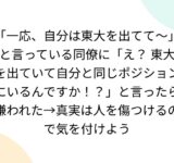 「一応、自分は東大を出てて〜」と言っている同僚に「え? 東大を出ていて自分と同じポジションにいるんですか!?」と言ったら嫌われた→真実は人を傷つけるので気を付けよう