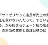 「サイゼリヤって店長が売上の責任を負わないんだって。すごいよね」から始まるチェーン店の店長の本当の業務と管理目標の話