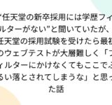 “任天堂の新卒採用には学歴フィルターがない”と聞いていたが、任天堂の採用試験を受けたら最初のウェブテストが大層難しく「フィルターにかけなくてもここでふるい落とされてしまうな」と思った話