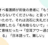 オペ看護師が術後の患者に「もう太らないでくださいね」と言っていたので、それは流石に失礼だと説教したら「毛布取らないで」って意味だった→「空耳アワー過ぎる」「日本語って、難しい」