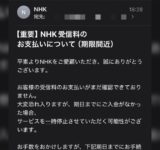 誰に送っとんじゃ…「NHK受信料の支払いがないのでサービスを停止する」フィッシングメールがNHKキャスター宛に届いてしまう「停止が困らない」