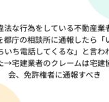 違法な行為をしている不動産業者を都庁の相談所に通報したら「いちいち電話してくるな」と言われた→宅建業者のクレームは宅建協会、免許権者に通報すべき