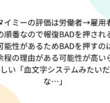 タイミーの評価は労働者→雇用者の順番なので報復BADを押される可能性があるためBADを押すのは余程の理由がある可能性が高いらしい「血文字システムみたいだな…」