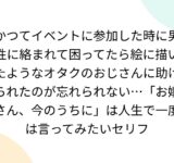 かつてイベントに参加した時に男性に絡まれて困ってたら絵に描いたようなオタクのおじさんに助けられたのが忘れられない…「お嬢さん、今のうちに」は人生で一度は言ってみたいセリフ