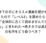 年下の子にオススメ漫画を聞かれたので『レベルE』を薦めたら「全体的に古くて読めませんでした」と言われた→老オタクは過去の名作をどう扱うべき?