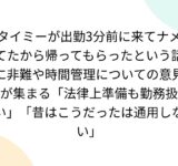 タイミーが出勤3分前に来てナメてたから帰ってもらったという話に非難や時間管理についての意見が集まる「法律上準備も勤務扱い」「昔はこうだったは通用しない」