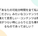 「あなたの可処分時間を全て私にください」みたいなコンテンツが増えて息苦しい…コンテンツは現実がつらい時にふらりと立ち寄れるものであってほしい?