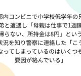 都内コンビニで小学校低学年の兄弟と遭遇し「母親は仕事で1週間帰らない、所持金は8円」という状況を知り警察に連絡した「こうなってしまっているのはいくつも要因が絡んでいる」