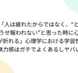 「人は疲れたからではなく、“どうせ報われない”と思った時に心が折れる」心理学における学習性無力感はガチでよくあるしヤバい